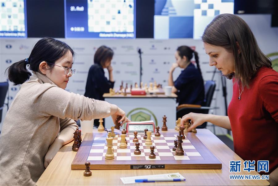 12月30日,中国选手谭中怡(左一)在超快棋比赛中。 当日,2019世界国际象棋快棋和超快棋锦标赛在俄罗斯莫斯科落幕。 新华社发(切尔纳夫斯基摄)