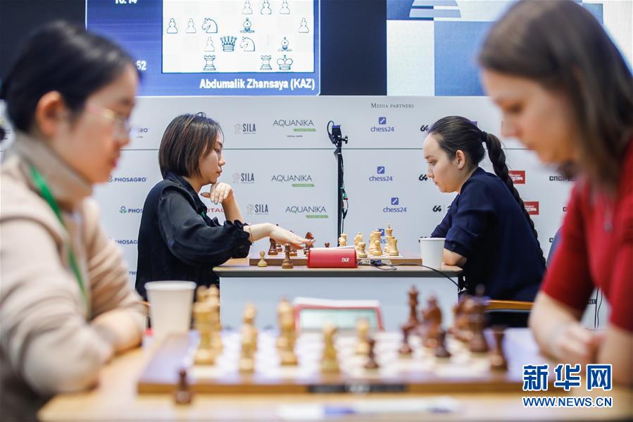 12月30日,中国选手雷挺婕(左二)在超快棋比赛中。 当日,2019世界国际象棋快棋和超快棋锦标赛在俄罗斯莫斯科落幕。 新华社发(切尔纳夫斯基摄)