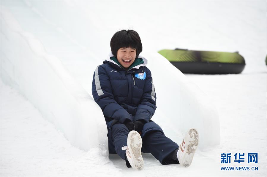 1月2日,参加北京市中小学生奥林匹克冬令营的学生在体验冰滑梯。新华社记者鞠焕宗摄