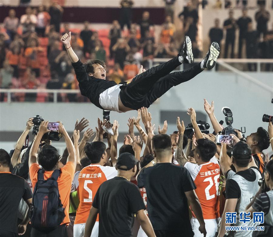 从远赴巴西的健力宝少年到韩日世界杯上的中场“铁闸”,从留洋英超的“中国铁”到让辽足重返中超的功勋老将,从站在名帅身后的助教到率队保级的中超球队主教练,“跑不死”的李铁迎来人生新阶段,成为中国男足第一位踢过世界杯的本土主帅。回首既往,“铁”就是这样炼成的。 图为2018年10月6日,武汉卓尔队球员赛后将主教练李铁(上)抛起庆祝。当日,在2018赛季中国足协甲级联赛第27轮比赛中,武汉卓尔队主场以2比2战平梅县铁汉生态队,凭借积分优势提前三轮冲超成功。 新华社记者熊琦摄