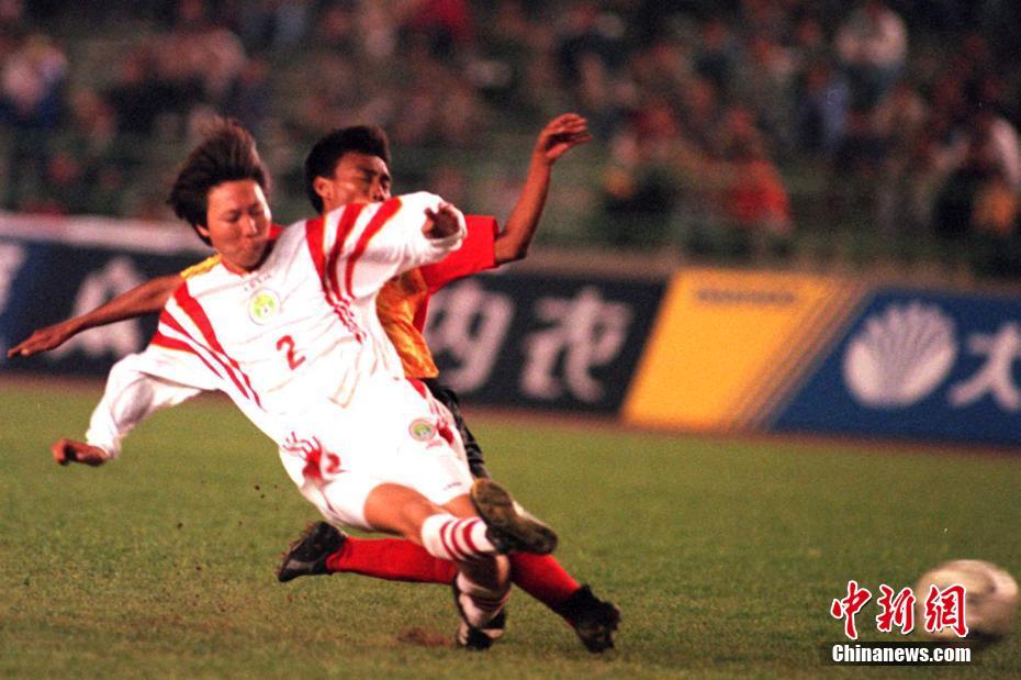 1月2日,中国足协正式宣布,任命李铁为中国国家男子足球队主帅。图为曾志在进军98年法国世界杯的中国足球队,在北京的热身赛中以五比零胜缅甸队,当时从巴西留学归国的健力宝青年队“小将”李铁攻入一球。中新社发 任晨鸣 摄