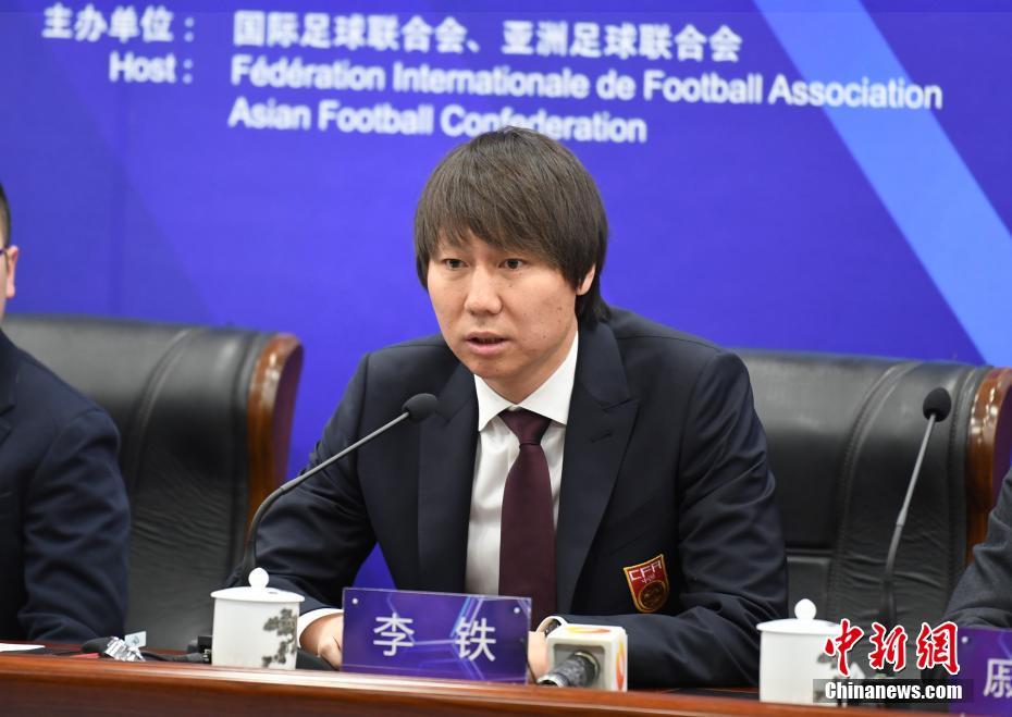 1月2日,中国足协正式宣布,任命李铁为中国国家男子足球队主帅。图为2017年2月23日,2018年国际足联俄罗斯世界杯亚洲区预选赛决赛阶段中国国家队对韩国国家队的首场赛事新闻发布会在长沙贺龙体育中心举行。时任中国男足国家队助理教练李铁出席新闻发布会。中新社记者 杨华峰 摄