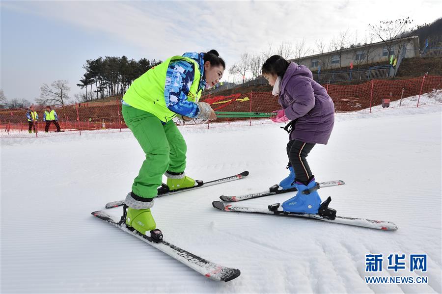 1月4日,在湖北省襄阳市保康县过渡湾镇梅花寨云海滑雪场,一名小游客在滑雪教练的指导下练习滑雪。 冬季里,人们走到户外,或感受冰雪运动的乐趣,或体验冬泳的酣畅,以多种方式度过美好的时光。 新华社发(杨韬 摄)