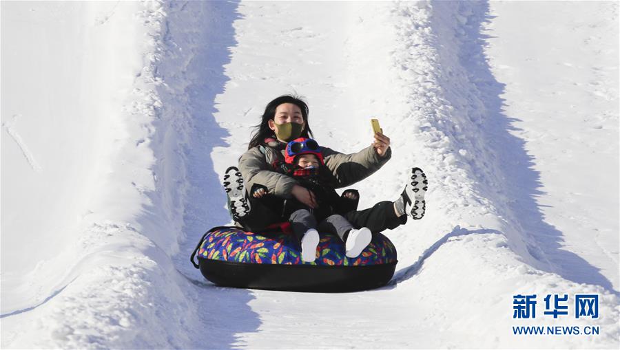 1月3日,在北京陶然亭公园,人们体验滑雪圈。 冬季里,人们走到户外,或感受冰雪运动的乐趣,或体验冬泳的酣畅,以多种方式度过美好的时光。 新华社发(刘宪国 摄)