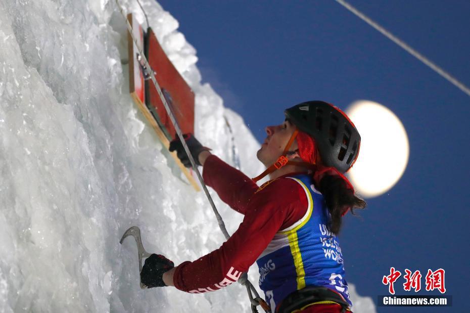 国际登联攀冰世界杯进行男、女速度赛争夺