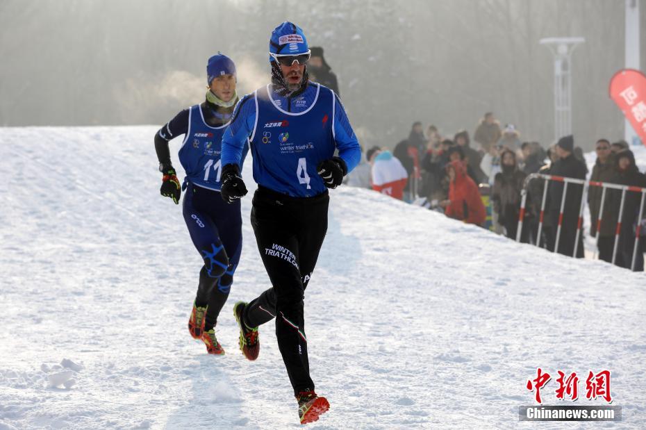 1月4日,2020年冬季铁人三项世界杯赛在哈尔滨举行,来自20个国家和地区的近300名运动员参加了比赛。图为俄罗斯选手帕维尔·安德烈耶夫获得男子优秀组冠军。中新社记者 吕品 摄