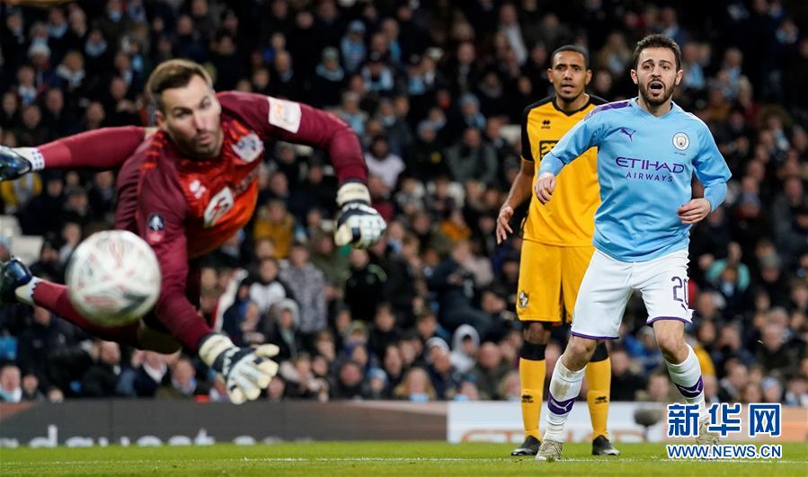 1月4日,曼城队球员席尔瓦(右)在比赛中射门后目送足球偏离球门。 当日,在2019-2020赛季英格兰足总杯第三轮比赛中,曼城队主场以4比1战胜韦尔港队。 新华社/路透