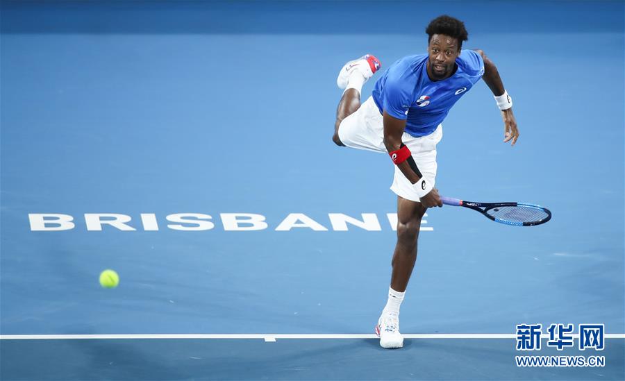 1月6日,孟菲斯在比赛中。 当日,在澳大利亚布里斯班进行的ATP杯网球赛A组比赛中,塞尔维亚队选手焦科维奇以2比0战胜法国队选手孟菲斯。 新华社记者白雪飞摄