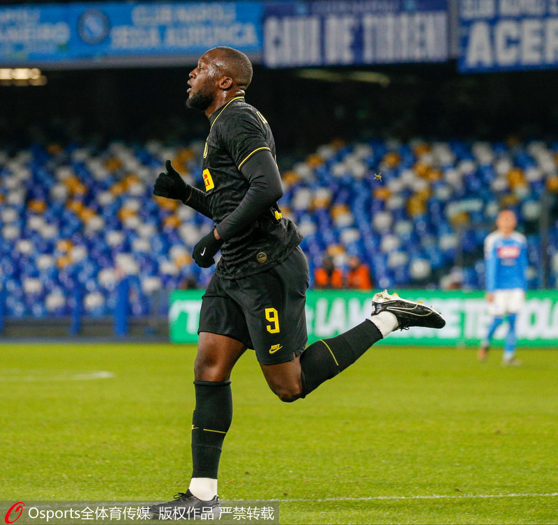 第14分钟,那不勒斯中场出现接球失误,国际米兰队卢卡库断球后一条龙快速突进,在禁区内左脚射中近门柱弹进球门,国际米兰1-0领先。