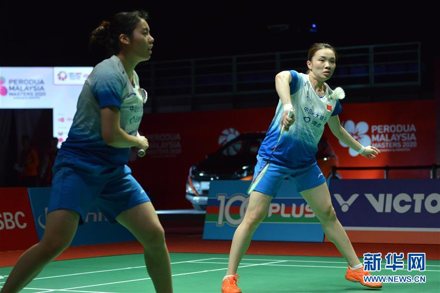 1月7日,董文静(右)/冯雪颖在比赛中。 当日,在吉隆坡举行的马来西亚羽毛球大师赛女双首轮比赛中,中国选手陈清晨/贾一凡以2比0战胜队友董文静/冯雪颖,晋级下一轮比赛。 新华社发(张纹综摄)