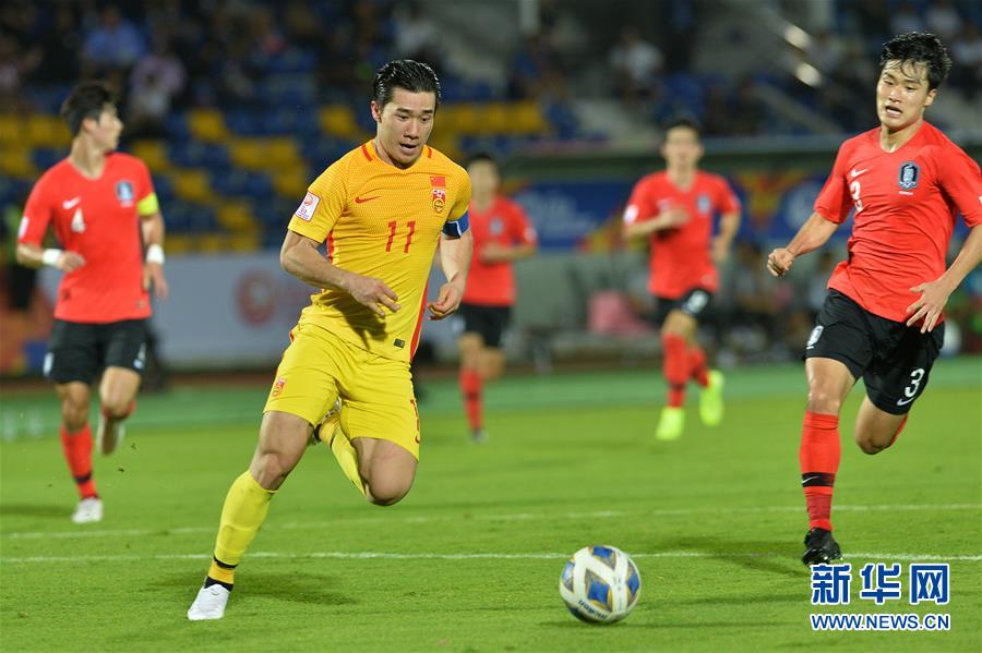 1月9日,中国国奥队球员陈彬彬(左)在比赛中。 当日,在泰国宋卡举行的亚足联U23锦标赛决赛阶段比赛暨2020东京奥运会男足预选赛C组比赛中,中国国奥队以0比1负于韩国国奥队。 新华社发(拉亨摄)