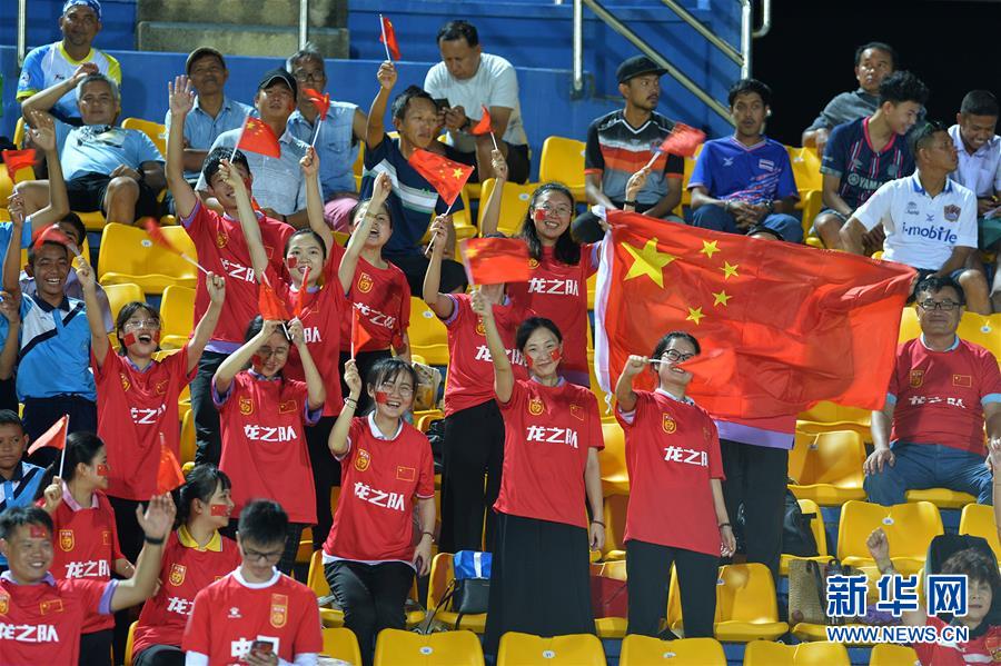 1月9日,中国球迷在比赛中呐喊助威。 当日,在泰国宋卡举行的亚足联U23锦标赛决赛阶段比赛暨2020东京奥运会男足预选赛C组比赛中,中国国奥队以0比1负于韩国国奥队。 新华社发(拉亨摄)