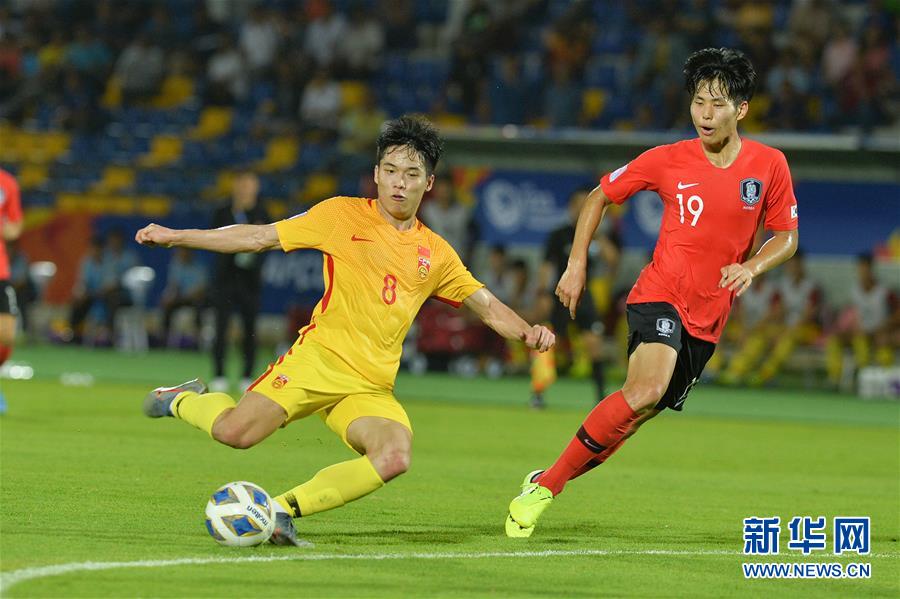 1月9日,中国国奥队球员段刘愚(左)在比赛中射门。 当日,在泰国宋卡举行的亚足联U23锦标赛决赛阶段比赛暨2020东京奥运会男足预选赛C组比赛中,中国国奥队以0比1负于韩国国奥队。 新华社发(拉亨摄)