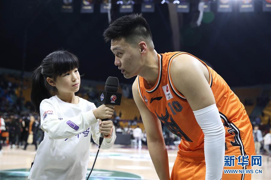 1月12日,南方明星队球员赵睿在赛后接受CBA小记者采访。 当日,在广州举行的2020年CBA全明星赛中,南方明星队以167比166战胜北方明星队。 新华社记者孟永民摄
