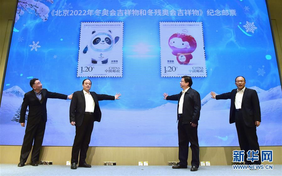 1月16日,北京冬奥组委副秘书长何江海(左二)同国家邮政局副局长戴应军(右二)等嘉宾共同为《北京2022年冬奥会吉祥物和冬残奥会吉祥物》纪念邮票揭幕。 当日,《北京2022年冬奥会吉祥物和冬残奥会吉祥物》纪念邮票在京首发。《北京2022年冬奥会吉祥物和冬残奥会吉祥物》纪念邮票一套两枚,邮票图案名称分别为:北京2022年冬奥会吉祥物、北京2022年冬残奥会吉祥物。同时,中国邮政推出了首日封、邮折、邮册等系列邮品。 新华社记者李贺摄