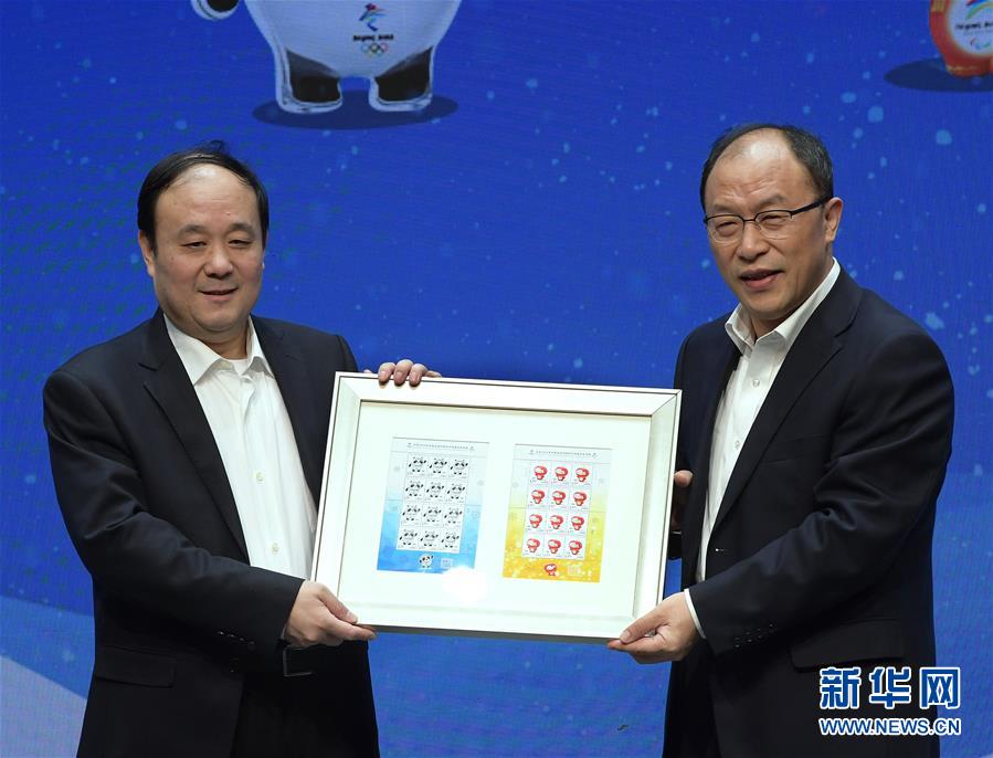 1月16日,中国邮政集团有限公司副总经理康宁(右)向北京冬奥组委副秘书长何江海移交编号为01A的《北京2022年冬奥会吉祥物和冬残奥会吉祥物》纪念邮票。 当日,《北京2022年冬奥会吉祥物和冬残奥会吉祥物》纪念邮票在京首发。《北京2022年冬奥会吉祥物和冬残奥会吉祥物》纪念邮票一套两枚,邮票图案名称分别为:北京2022年冬奥会吉祥物、北京2022年冬残奥会吉祥物。同时,中国邮政推出了首日封、邮折、邮册等系列邮品。 新华社记者李贺摄