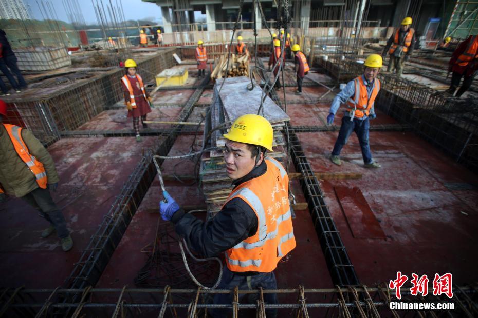 1月16日,工人们在准备吊运材料。鼠年新春将至,在2021年成都世界大学生夏季运动会(以下简称“成都大运会”)建设工地,各项赛事基础设施的建设仍在如火如荼地进行中,工程建设者们以饱满的热情坚守在各自的工作岗位上。据了解,成都大运会将于2021年8月8日至19日在四川省成都市举行。中新社记者 王磊 摄
