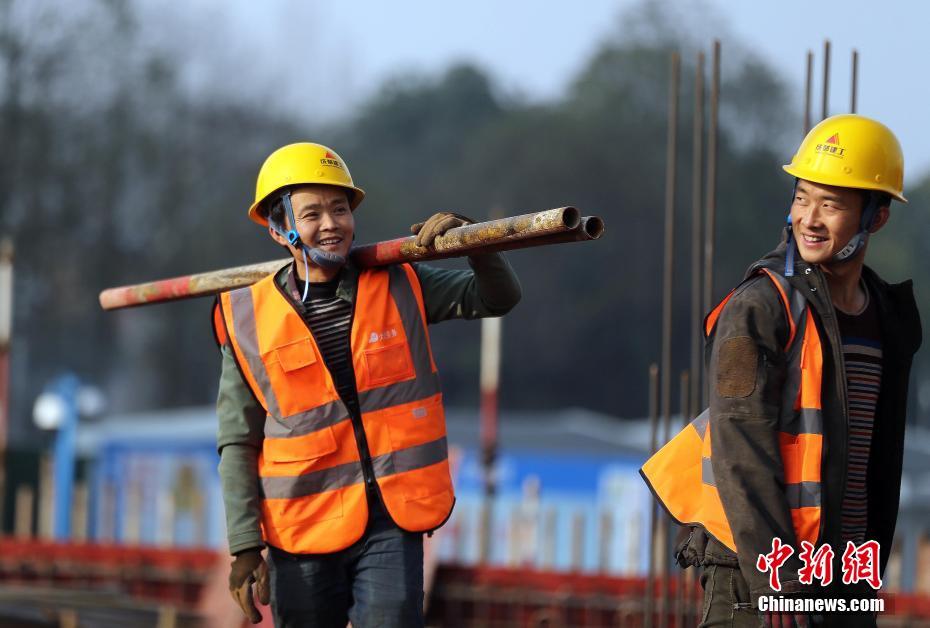 1月16日,建筑工人倪文军(左)扛着铁管准备搭建脚手架。鼠年新春将至,在2021年成都世界大学生夏季运动会(以下简称“成都大运会”)建设工地,各项赛事基础设施的建设仍在如火如荼地进行中,工程建设者们以饱满的热情坚守在各自的工作岗位上。据了解,成都大运会将于2021年8月8日至19日在四川省成都市举行。中新社记者 王磊 摄