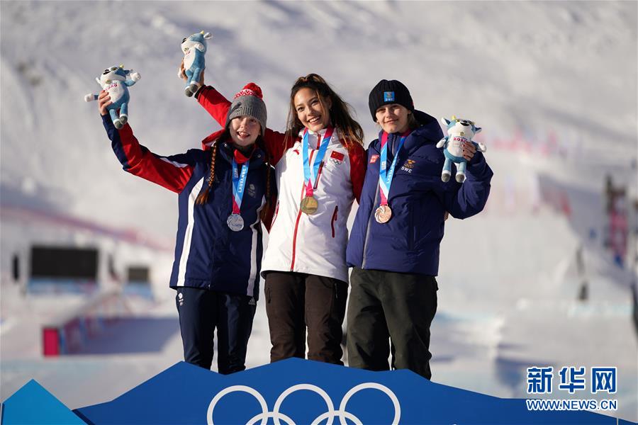1月22日,谷爱凌(中)、缪尔和布尔曼松在颁奖仪式上。 当日,在瑞士莱森进行的第三届冬季青年奥林匹克运动会自由式滑雪女子大跳台决赛中,中国选手谷爱凌以171.25分的总得分夺得冠军,英国选手缪尔和瑞典选手布尔曼松分别获得亚、季军。 新华社记者王建威摄