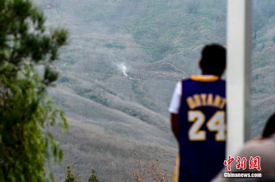 已退役NBA著名球员科比·布莱恩特(Kobe Bryant)当地时间26日在美国加利福尼亚州卡拉巴萨斯市因乘坐的直升机坠毁而遇难,年仅41岁。图为球迷眺望遇难事发地现场。