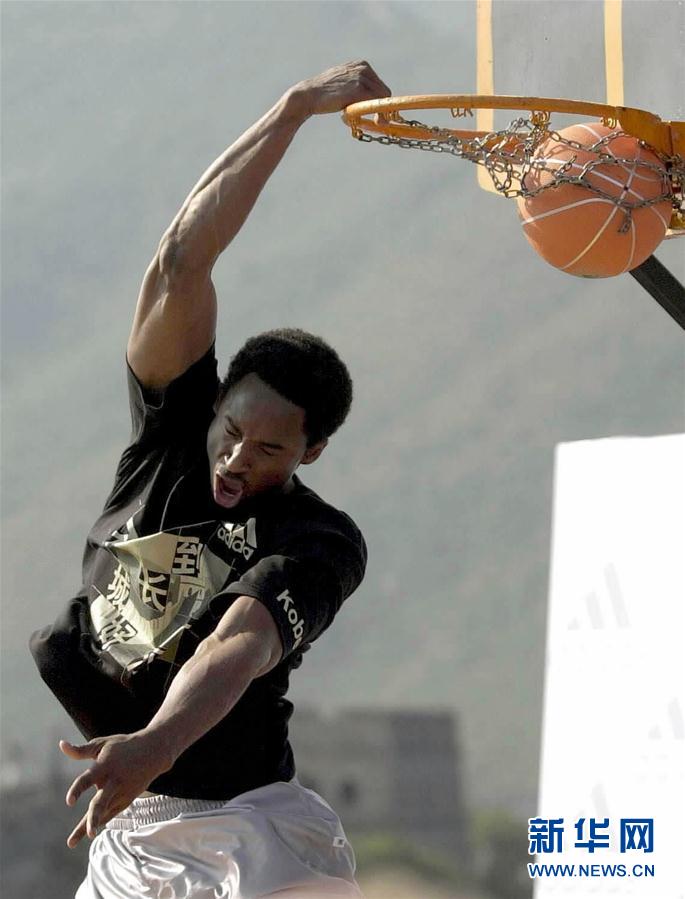 美职篮退役球星科比·布莱恩特26日在美国加利福尼亚州南部卡拉巴萨斯市发生的直升机坠毁事故中丧生,享年41岁。 洛杉矶县治安官办公室官员26日在新闻发布会上说,这起坠机事故发生在当地时间上午9时47分,地点位于洛杉矶市区以东约50公里处。事发时直升机上有9人,包括科比和其13岁的女儿吉安娜,无人在事故中生还。目前,事故原因正在调查中。 这是2001年8月11日,科比在慕田峪长城举行的活动中扣篮。 新华社记者戚恒摄
