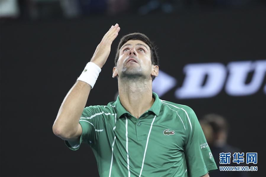 2月2日,焦科维奇庆祝比赛胜利。 当日,在澳大利亚墨尔本进行的澳大利亚网球公开赛男子单打决赛中,塞尔维亚选手焦科维奇以3比2战胜奥地利选手蒂姆,夺得冠军。 新华社记者 白雪飞 摄