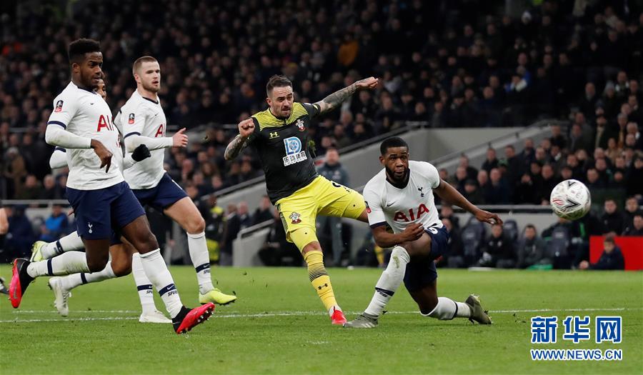 2月5日,南安普敦队球员英斯(右二)打入进球。 当日,在英格兰足总杯第四轮的一场重赛中,托特纳姆热刺队主场以3比2战胜南安普敦队,晋级下一轮。 新华社/路透