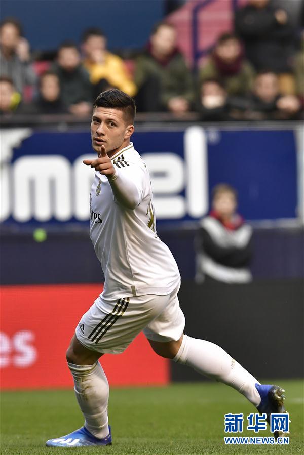 2月9日,皇家马德里队球员约维奇在进球后庆祝。 当日,在2019-2020赛季西班牙足球甲级联赛第23轮比赛中,皇家马德里队客场以4比1战胜奥萨苏纳队。 新华社/美联