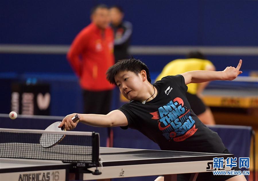 2月10日,中国国家乒乓球队队员孙颖莎在训练中。 当日,中国国家乒乓球队在卡塔尔首都多哈进行训练,备战三月份举行的国际乒联世界巡回赛卡塔尔公开赛和釜山乒乓球团体世锦赛。 新华社发(尼库摄)