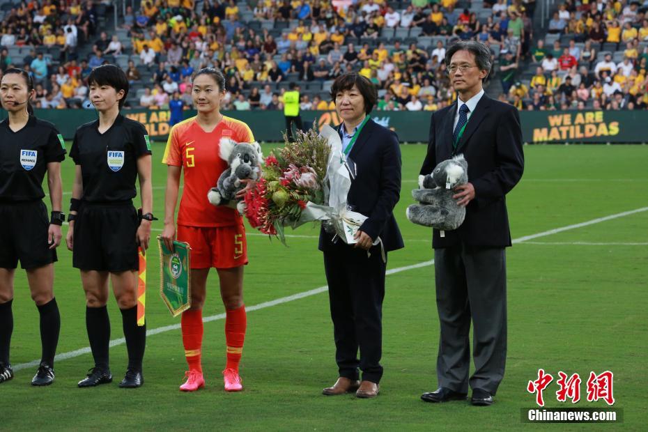 2月13日,东京奥运会女足亚洲区预选赛B组最后一战在澳大利亚悉尼举行,中国女足以1:1战平澳大利亚队,名列奥预赛小组第二。图为中国驻悉尼总领事顾小杰(右一)、中国足协副主席孙雯(右二)到现场观战。 中新社记者 陶社兰 摄