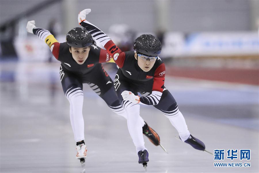 2月13日,中国队选手金京珠(右)、赵欣在女子团体竞速赛中。 当日,在美国盐湖城举行的2020年世界单项速滑锦标赛女子团体竞速赛中,中国队以1分26秒809的成绩获得第四名。 新华社发(马特·赫尔普摄)