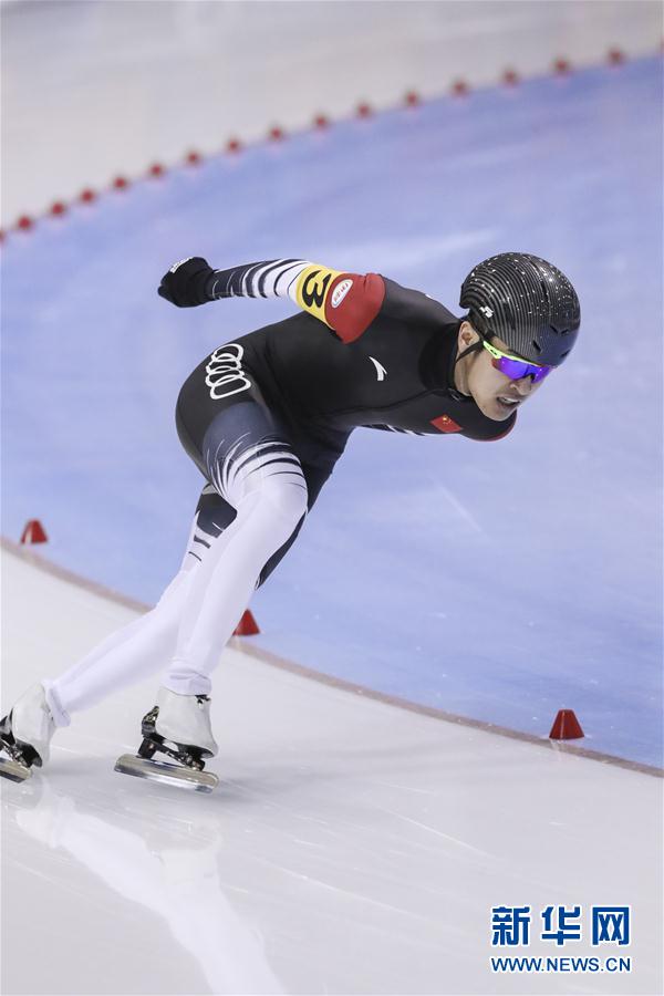 2月13日,中国队选手宁忠岩在男子团体竞速赛中。 当日,在美国盐湖城举行的2020年世界单项速滑锦标赛男子团体竞速赛中,中国队以1分18秒533的成绩获得亚军。 新华社发(马特·赫尔普摄)
