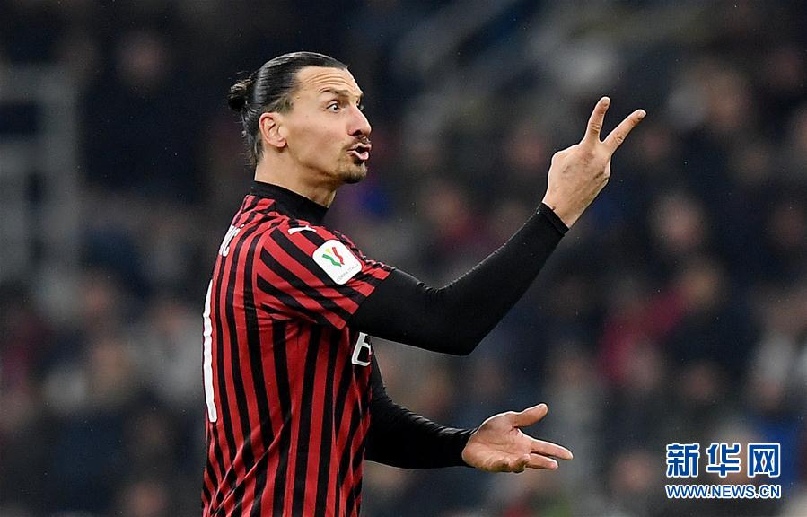 2月13日,AC米兰队球员伊布拉希莫维奇在比赛中。 当日,在2019-2020赛季意大利杯足球赛半决赛首回合比赛中,AC米兰队主场以1比1战平尤文图斯队。 新华社/路透