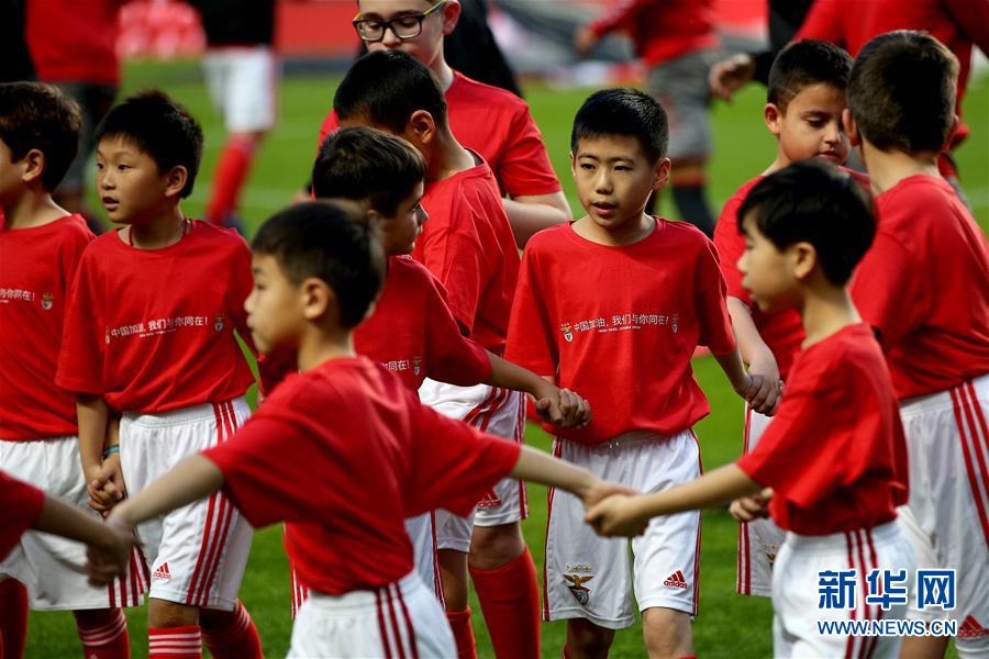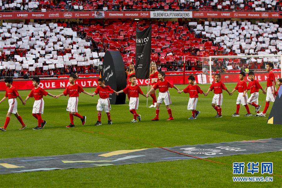 2月15日,写有汉字“中国加油,我们与你同在!”的标语出现在开场仪式上。 当日,在里斯本举行的2019-2020赛季葡萄牙足球超级联赛第21轮本菲卡主场对阵布拉加的比赛前,本菲卡俱乐部邀请44名中葡两国球童参加开场仪式,并打出了“中国加油,我们与你同在!”的暖心标语。 新华社发(佩德罗·菲乌萨摄)