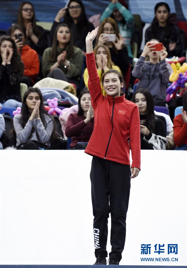 2月16日,亚军中国选手刘灵玲在领奖台上。 当日,在阿塞拜疆首都巴库举行的2020年蹦床世界杯系列赛巴库站女子网上个人决赛中,中国选手刘灵玲以54.945分的总成绩获得亚军。 新华社发(巴巴耶夫摄)