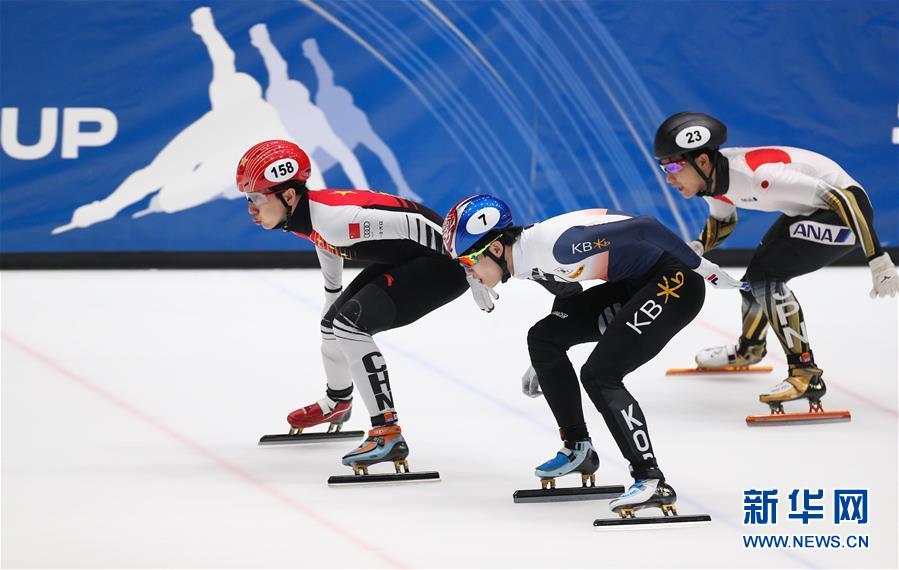 2月15日,中国队选手韩天宇(左)在混合接力2000米A组决赛中。 当日,在2019-2020赛季国际滑联短道速滑世界杯荷兰多德雷赫特站2000米混合接力A组决赛中,中国队以2分42秒442的成绩夺得冠军。 新华社记者 郑焕松 摄