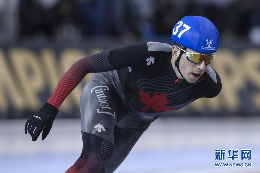 2月16日,加拿大选手贝尔乔斯在比赛中。最终他以7分39秒790的成绩获得银牌。 当日,国际滑联单项速滑世锦赛男子集体出发比赛在美国盐湖城举行。 新华社发(马特·赫尔普摄)