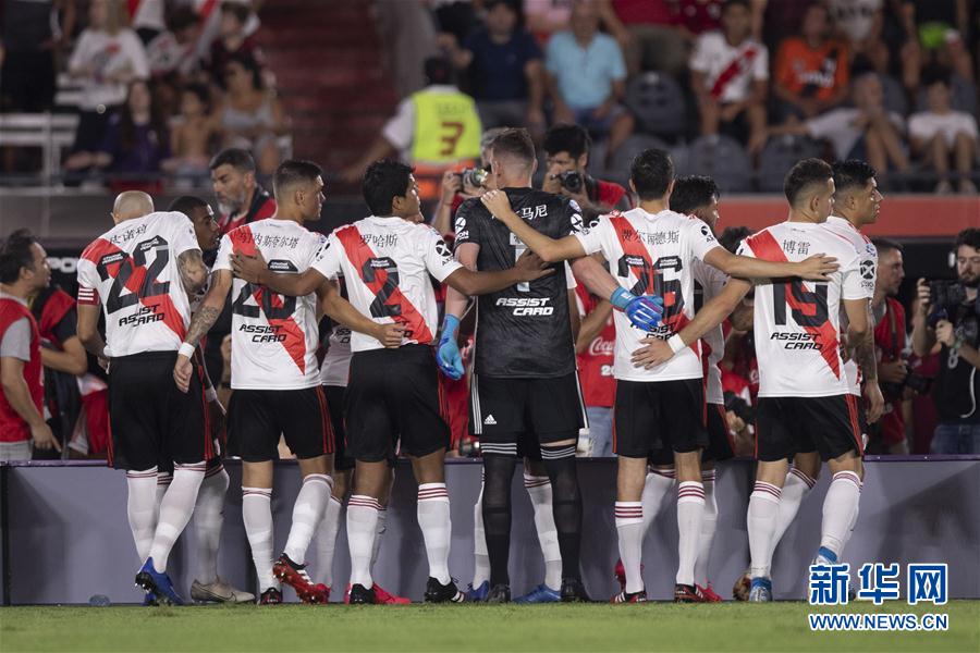2月16日,球衣上印有中文名字的河床队球员在比赛前。 当日,在阿根廷首都布宜诺斯艾利斯举行的2019-2020赛季阿根廷超级联赛第20轮河床队主场对阵班菲尔德队的比赛中,河床俱乐部在球场屏幕上投放了“加油中国 加油武汉”的西班牙语标语,河床队球员穿着印有中文名字的球衣,以表达对中国抗击疫情的支持。 新华社发(马丁·萨巴拉摄)