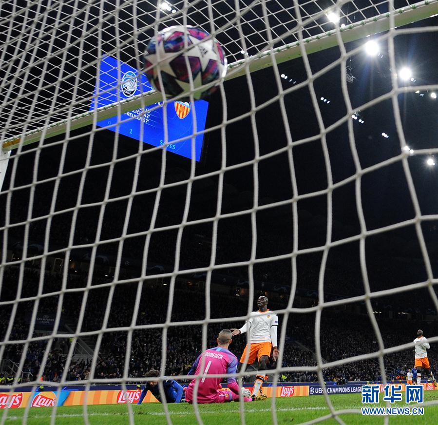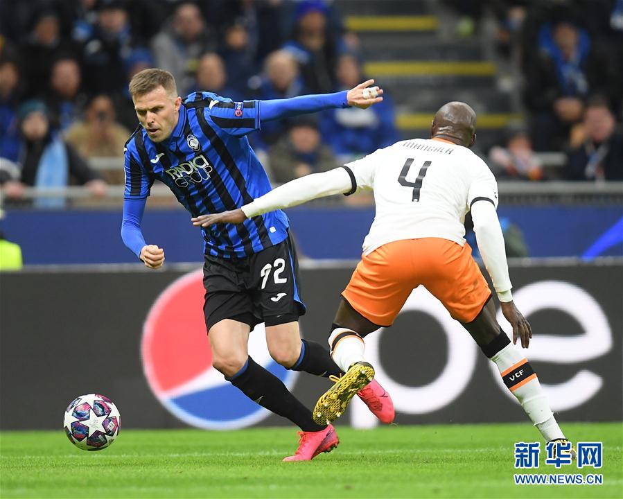 2月19日,亚特兰大队球员哈特鲍尔(左一)在比赛中射入个人全场第二粒进球。 当日,在2019-2020赛季欧洲足球冠军联赛十六强赛首回合比赛中,意甲亚特兰大队主场以4比1战胜西甲巴伦西亚队。 新华社发(阿尔贝托·林格里亚摄)