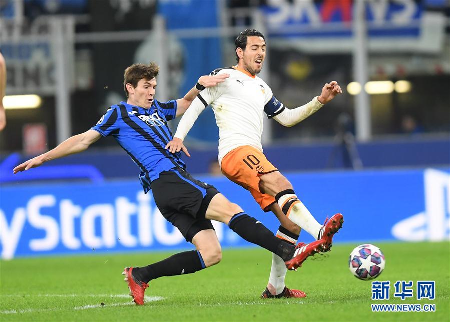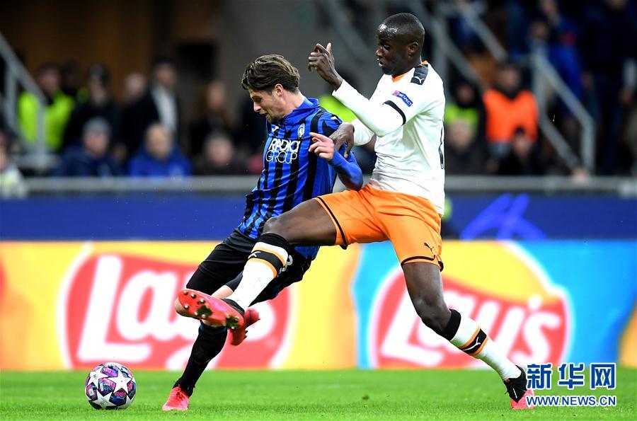 2月19日,亚特兰大队球员哈特鲍尔(左)在比赛中射入个人全场第二粒进球。 当日,在2019-2020赛季欧洲足球冠军联赛十六强赛首回合比赛中,意甲亚特兰大队主场以4比1战胜西甲巴伦西亚队。 新华社发(阿尔贝托·林格里亚摄)
