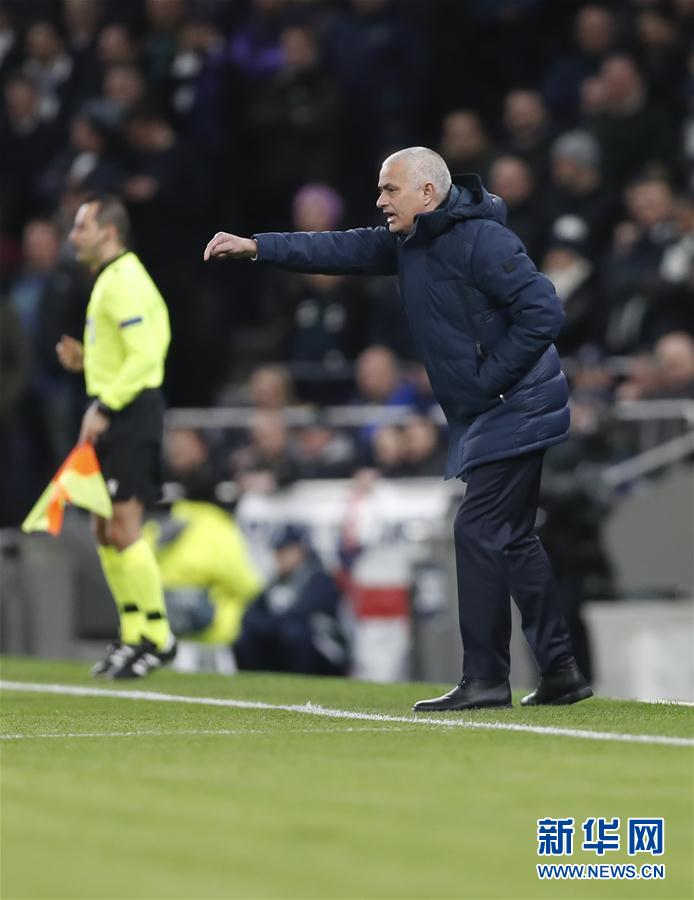 2月19日,热刺队主帅穆里尼奥在场边指挥。 当日,在2019-2020赛季欧洲足球冠军联赛十六强赛首回合比赛中,英超托特纳姆热刺队主场以0比1不敌德甲莱比锡队。 新华社记者 韩岩 摄
