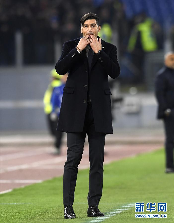 2月23日,罗马队主教练丰塞卡在场边指挥。 当日,在2019-2020赛季意大利足球甲级联赛第25轮比赛中,罗马队主场以4比0战胜莱切队。 新华社发(奥古斯托·卡萨索利摄)