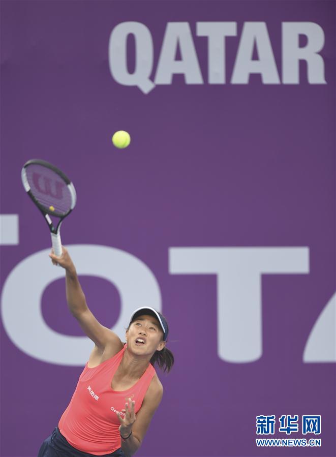 2月24日,中国选手张帅在比赛中发球。 当日,在卡塔尔首都多哈进行的2020年WTA卡塔尔公开赛单打首轮比赛中,中国选手张帅以0比2不敌西班牙选手纳瓦罗,无缘下一轮。 新华社发(尼库摄)