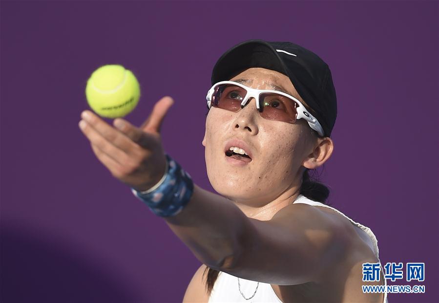 2月25日,中国选手郑赛赛在比赛中发球。 当日,在卡塔尔首都多哈进行的2020年WTA卡塔尔公开赛单打第二轮比赛中,中国选手郑赛赛以2比0战胜俄罗斯选手兹沃娜列娃,晋级下一轮。 新华社发(尼库摄)