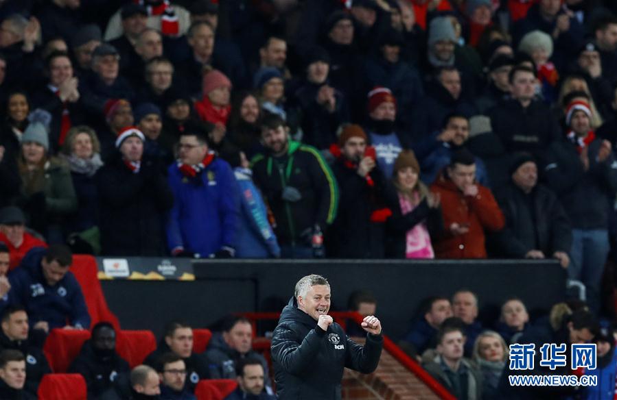 2月27日,曼联队主教练索尔斯克亚在伊哈洛进球后庆祝。 当日,在比利时布鲁日进行的2019-2020赛季欧罗巴联赛1/16决赛第二回合比赛中,英超曼彻斯特联队主场以5比0战胜比甲布鲁日队,从而以6比1的总比分晋级16强。 新华社/路透