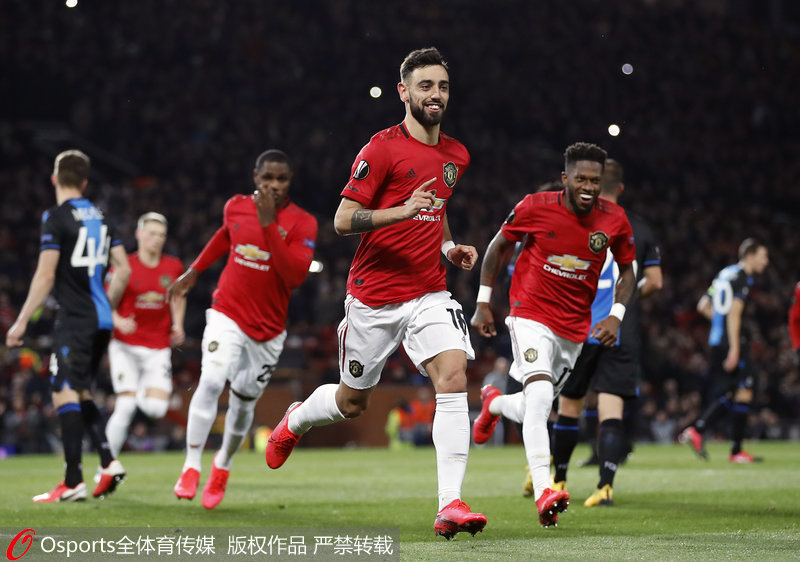最终全场比赛结束,曼联在主场以5-0的比分血洗布鲁日,成功晋级欧联16强。