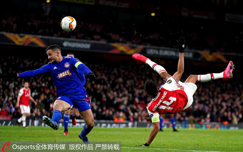 第113分钟,厄齐尔前场右路高空球斜传到禁区内,前点奥林匹亚科斯球员头球解围没顶远,后点奥巴梅扬凌空侧钩破门,1-1。
