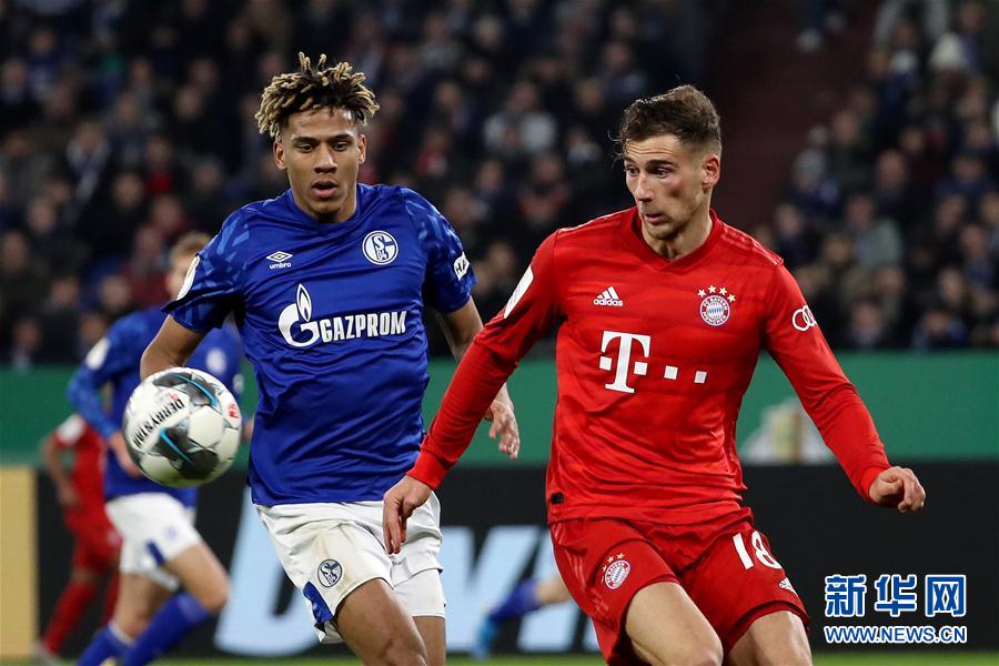 3月3日,拜仁慕尼黑队球员格雷茨卡(右)在比赛中与沙尔克04队球员托迪博拼抢。 当日,在德国盖尔森基兴举行的2019-2020赛季德国杯足球赛四分之一决赛中,拜仁慕尼黑队客场以1比0战胜沙尔克04队,晋级半决赛。 新华社发(约阿希姆·毕瓦勒兹摄)