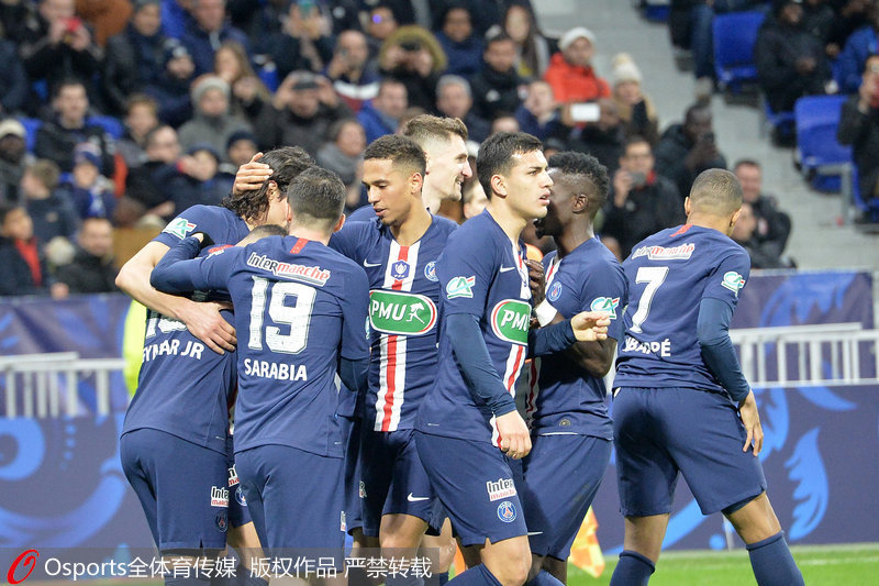 全场比赛结束,巴黎5-1逆转10人里昂,成功杀入法国杯决赛。