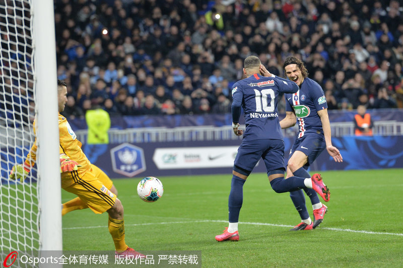 全场比赛结束,巴黎5-1逆转10人里昂,成功杀入法国杯决赛。